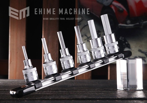 ラチェットハンドルに差し込んで使用することにより六角穴付ボルトの締め付けがすばやく行えます。