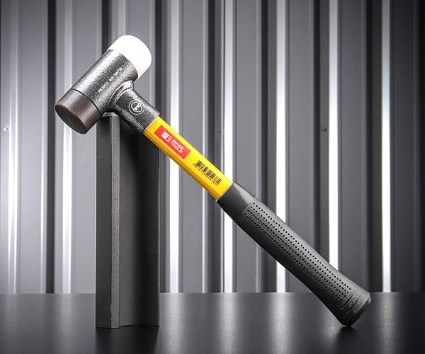 両側がそれぞれ「スチール」と「ナイロン (プラスチック)」のヘッドで、柔らかく傷つきやすいものから、硬く頑丈なものまで、1本で作業できます。