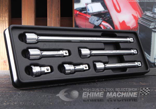 エンド部分(ラチェット類差込側)に、ギザ加工を施しているので、ラチェットハンドルに差し込んで使用する際など、早回し時に便利な、ko-kenのエクステンションバー6本セットです。