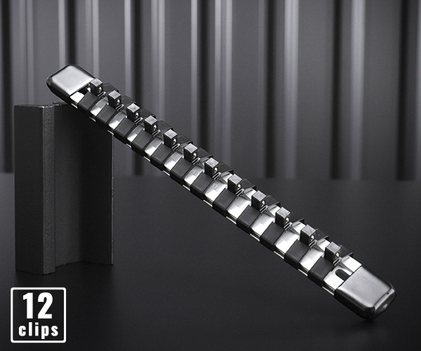 ソケット、ジョイント類をすっきり整理することができるアルミレールのソケットホルダーです。