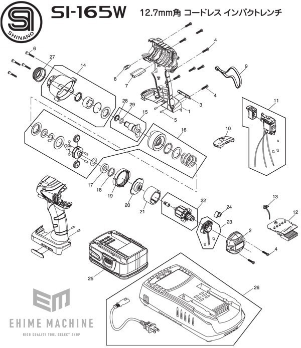 SI シナノ 信濃機販 12.7sq. コードレスインパクトレンチ 電動 SI-165W用部品です。