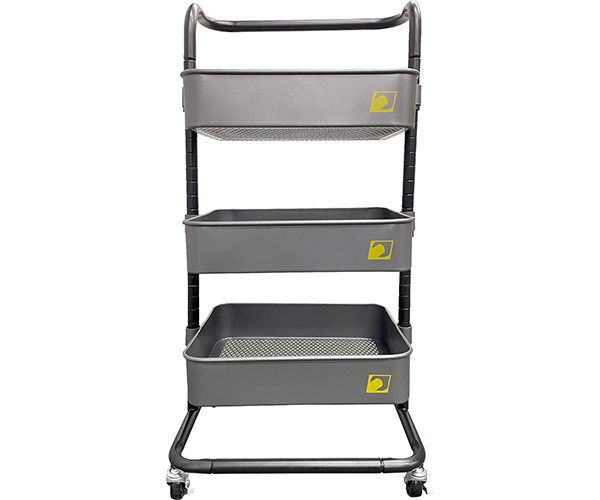 工具や日用品を収納する移動式ラック。