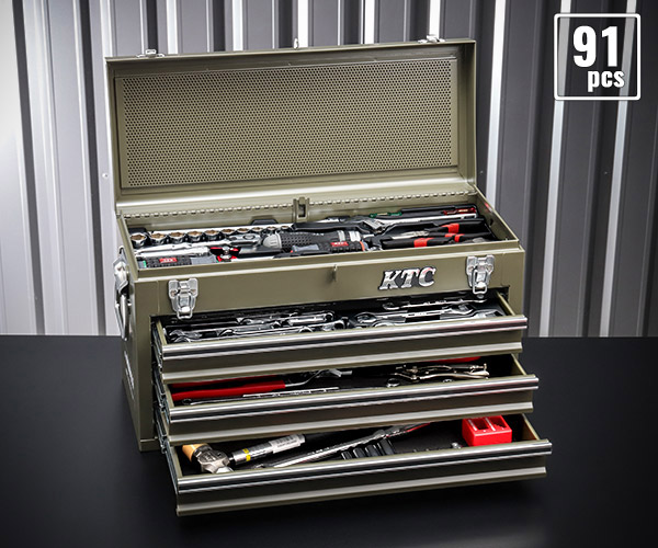 KTC SK39120XODEM 9.5sq. 91点工具セット オリーブドラブ SKX0213ODEM 採用モデル エヒメマシンオリジナル商品
