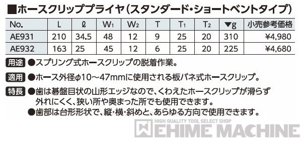 KTC ホースクリッププライヤー AE932 ショートベントタイプ