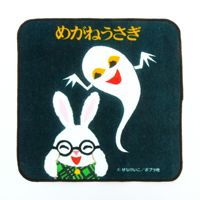 せなけいこのロングセラー絵本『めがねうさぎ』が、プチタオルになりました! 絵柄は、おなじみの絵本の表紙の場面。
