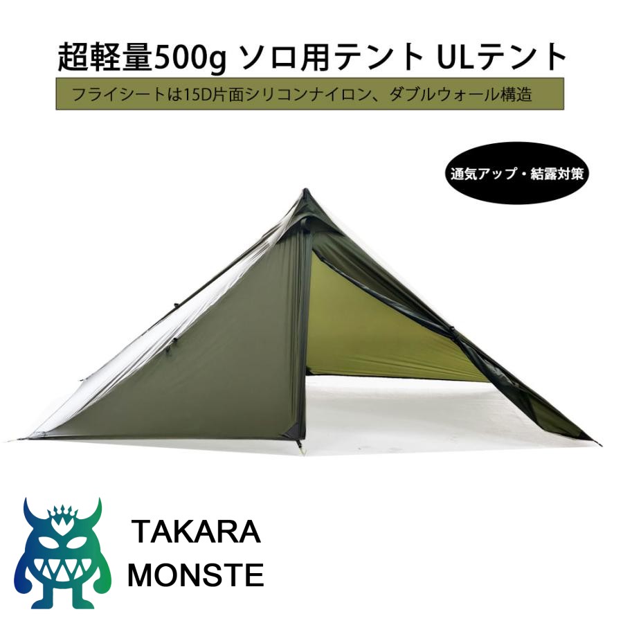 Teci 超軽量500g ソロ用テント ULテントTipi tent 登山テント 山岳テント 15Dナイロン 片面シリコンコーティング 耐水圧3000mm 1人 超軽量テント