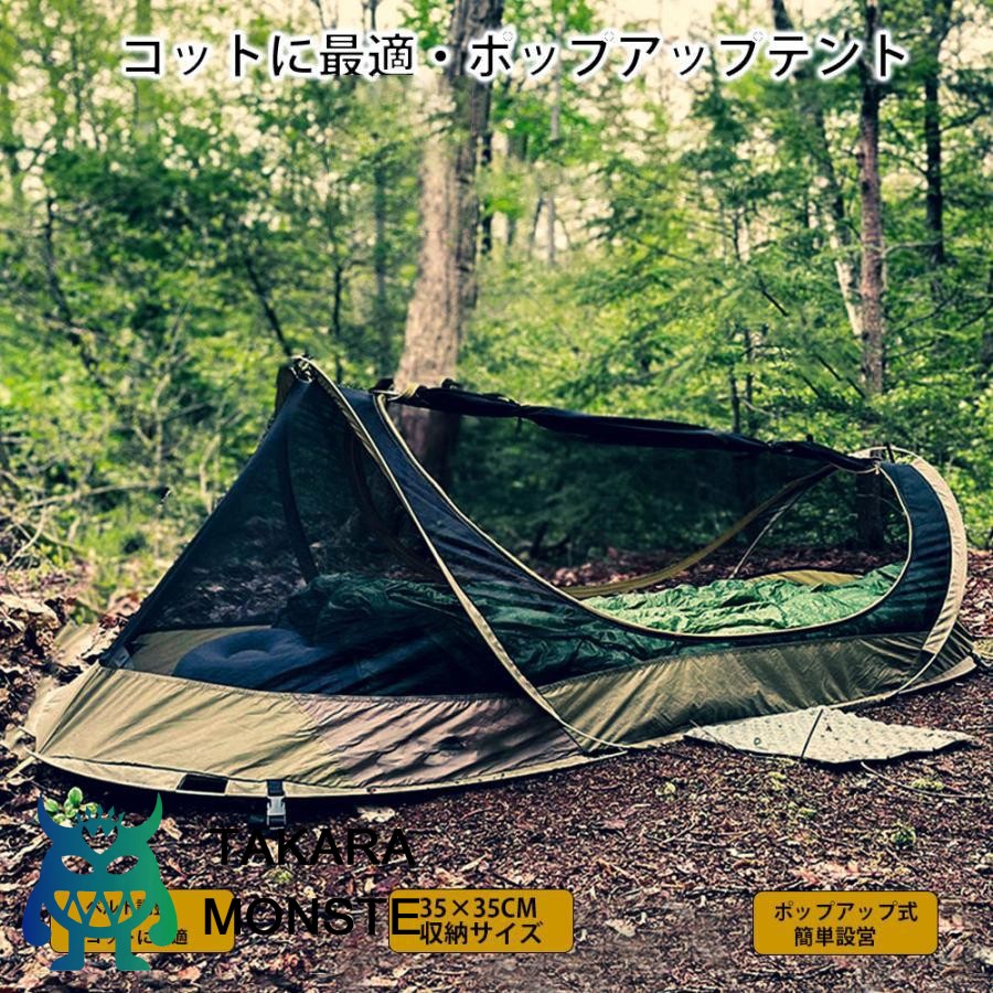 ポップアップテント 1人用 ソロ コット蚊帳 車中泊 蚊帳 インナーテント モスキートネット シェルター 虫よけコーティング対策 キャンプ 収納サイズ約35×35cm