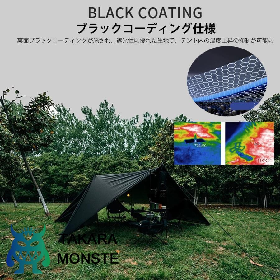 レクタタープ タープ キャンプタープ 天幕 日除けシェード サンシェルター 210T素材 ブラックコーディング 19箇所ループ 軽量 防水 4x4m 収納バック