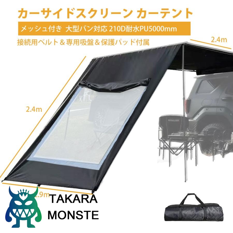 カーサイドスクリーン カーテントカータープ メッシュ付き 雨除け 日よけ 大型バン対応 210D耐水4.8mX2.9mpu5000mm はっ水 釣り 車中泊 アウトドア キャンプ