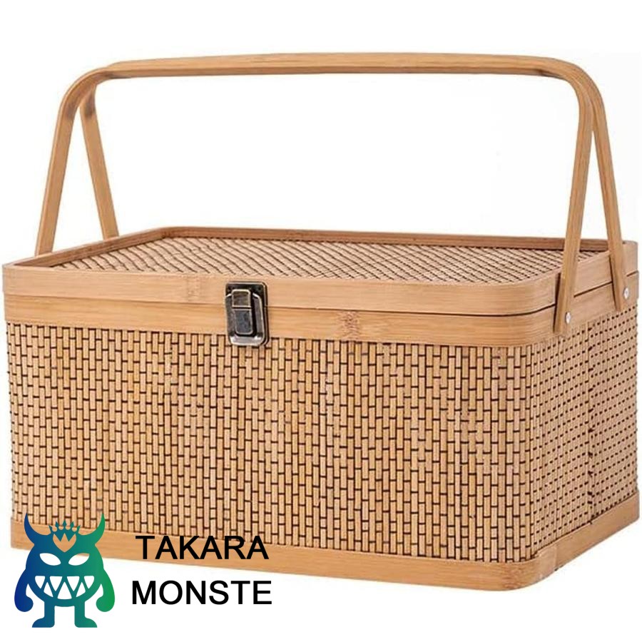 ピクニックバスケット 竹籠 花かご 竹かご 収納ケース 編まれた 天然素材 蓋付きバスケット バスケット ランチバスケット 大容量 収納バスケット アウトドア/海