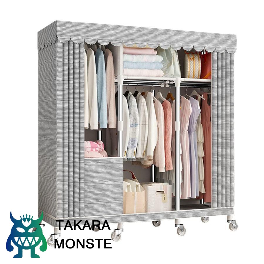 【便利なワードローブ】:ポータブルワードローブには仕切りがあり、衣服に帰属感を与えます。 服の厚さや長さなど、一年を通して場所を変えて収納できるので、服がごちゃごちゃして見つからない心配もありません。