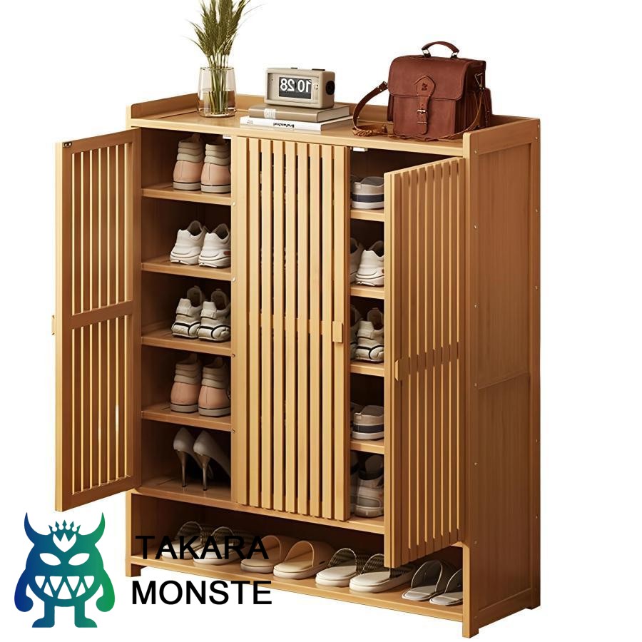 シューズボックス 下駄箱 靴箱 大容量 天然竹製 扉付き 玄関収納 スリム 薄型 省スペース 消臭 組立式 小物収納 玄関 廊下 下駄箱・シューズキャビネット