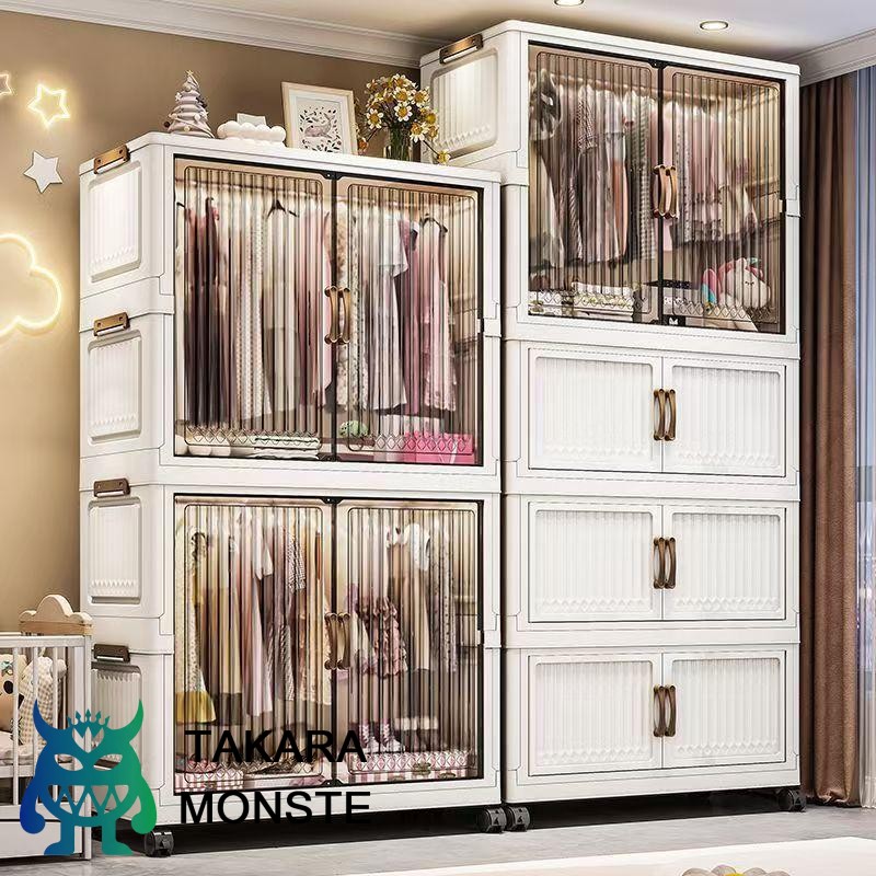 1つの洋服収納キャビネット+3つの折りたたみ式収納キャビネット サイズ:69*38.5*37.5cm