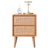 全無垢材ベッドサイドテーブル ナイトテーブル サイドテーブル ラタン純無垢材北欧モダンミニマリスト収納棚スモールオフィス寝室 引き出し付きオーク材 ナチュ