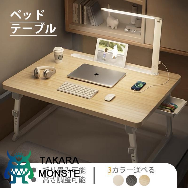 折りたたみデスク ベッドテーブル ベット用テーブル 角度調節可能 デスク 折りたたみ ベッド 机 折りたたみ式テーブル パソコンテーブル 腕保護 軽量