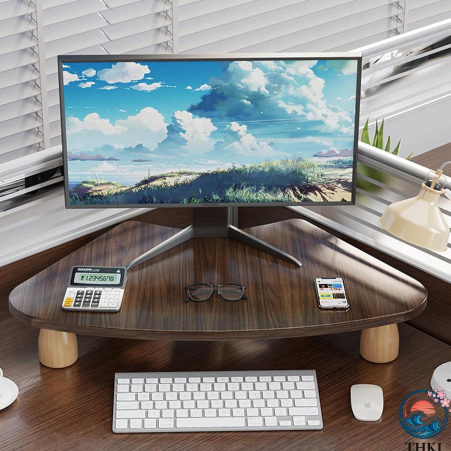 コーナーモニタースタンド 卓上 机上台 パソコン台 PC台 机上ラック 60cm横幅 木製天板 デスクトップ用 机上 pc モニター台 パソコンラック 卓上 収納 三角型収