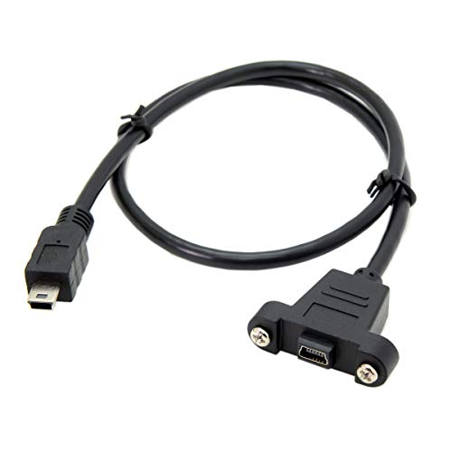 Cablecc パネルマウントタイプ ミニ USB 5ピン オス-メス 延長アダプターケーブル ネジ付き 50cm