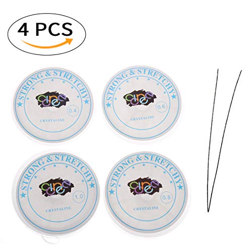 CCINEE ブレスレット用 弾力紐 シリコンゴム 水晶の線 0.4mm/0.6mm/0.8mm/1mmサイズ 通しワイヤー 4本 通し針1本 5点セ