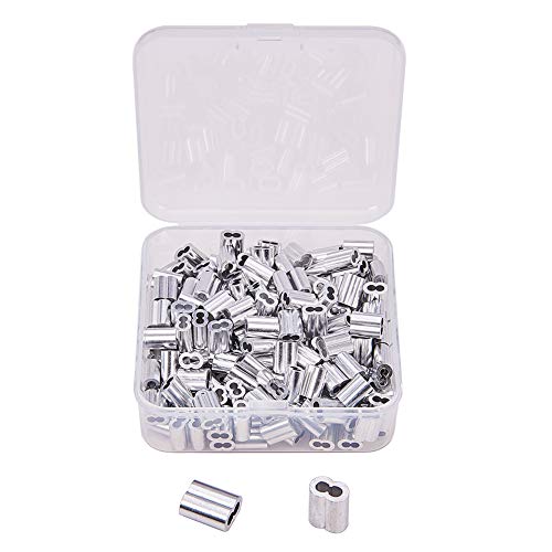 INCREWAY200pcsアルミニウムダブルバレルフェルール圧着ループスリーブ直径2mmのワイヤーロープとケーブル用