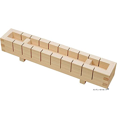 【型崩れすることなくきれいに切り分けできる包丁の切込みガイド付き】 1ブロック約3×3×高さ3.5cm、出来上がりは包丁の幅、押し方でもう少し小さくなります。具材を工夫して様々な押寿司をつくる楽しみがあります。押寿司は、地域によって様々な特長がある郷土料理でもあります。代々伝わる伝統の味を楽しんだり、創作的な寿司にチャレンジしたり、楽しみが広がるキッチン道具です。
