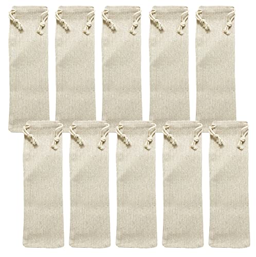 VIEAURA カトラリー 箸 ストロー 収納袋 箸袋 扇子 ロング 巾着袋 リネン 無地 綿麻 25cm×8cm 10個セット 洗濯可能 小物入れ 旅