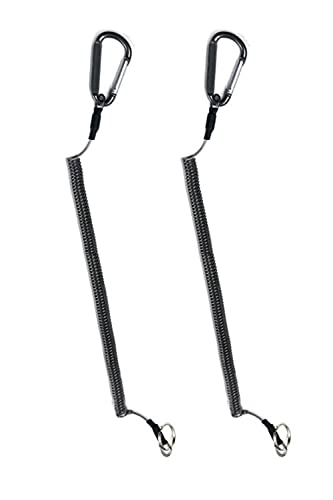 wumio スパイラルコード 2本セット 最大伸長1.5m 落下防止 ストラップ 安全ワイヤーコード カラビナ ツール 忘れ物 釣り スマホ ゴルフ