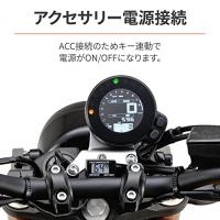 【商品構成】メーター本体、電源ハーネス、ジョイントハーネス、R1/8温度センサー、両面テープ、結線コネクタ、結束バンド