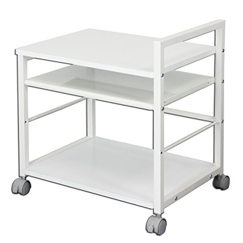 PJC7001-WH プリンター台 3段・プリンターワゴン プリンターラック キャスター付き【デスクの下に収納】