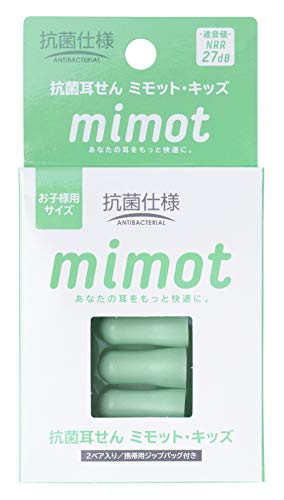抗菌 耳せん mimot キッズサイズ 2ペア入り 携帯用ジップバッグ付き