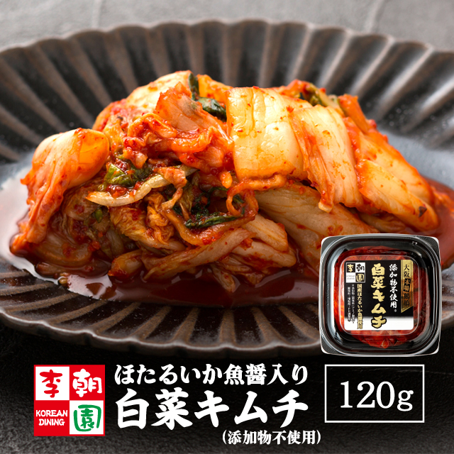 ほたるいか魚醤入り 白菜キムチ カット 国産 120g 添加物不使用タイプ キムチ 韓国食品 お取り寄せ 韓国キムチ 国産キムチ 韓国 李朝園キムチ 無添加 李朝園