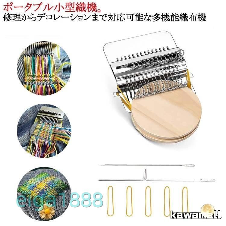 ポータブル小型織機 小型編み機 木製 手持ち式編み機 デニム穴修理ツール 織りツール かがり織機 ミニ織り機 ステンレス製 ダーニング織機 ビーズ織機