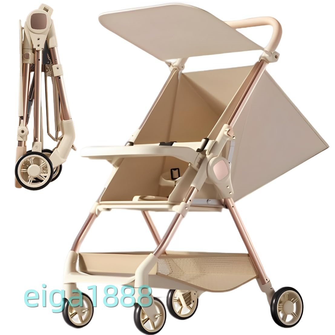 ベビーカー B 型 軽量コンパクト 折りたたみ サンシェード付き 丸洗い可 新生児〜5 歳対応 出産祝い アップグレード・ベージュ