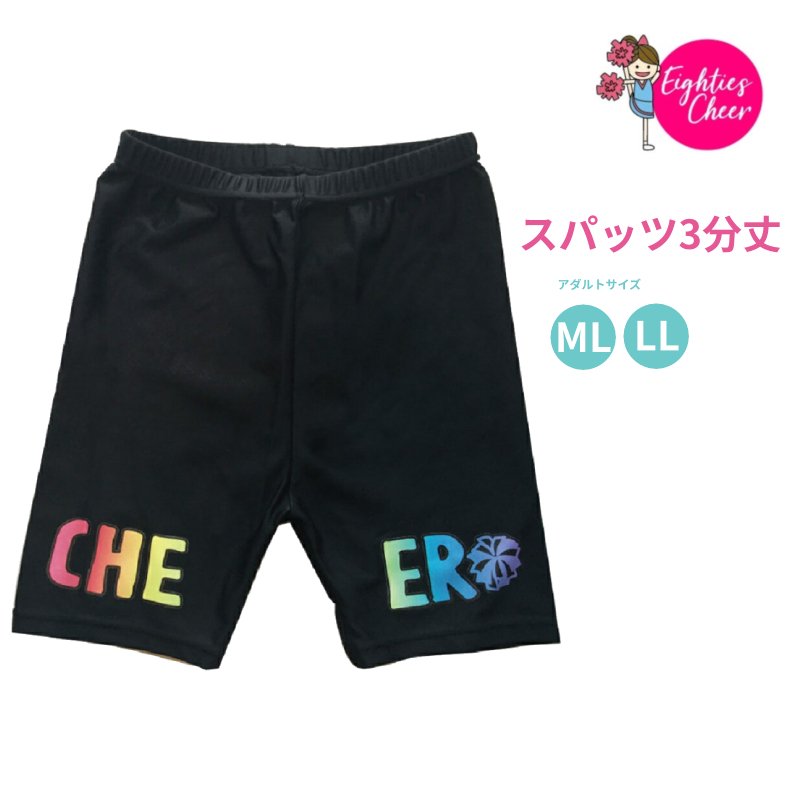 チア スパッツ 3分丈 練習着 大人 MIX柄 グラデーション 黒 ブラック エイティズ