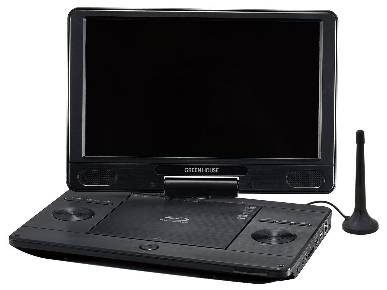 180度回転可能な11.6型ワイド液晶ポータブルブルーレイプレーヤー。地デジを録画したブルーレイディスクが見られるBDAV・CPRM対応。