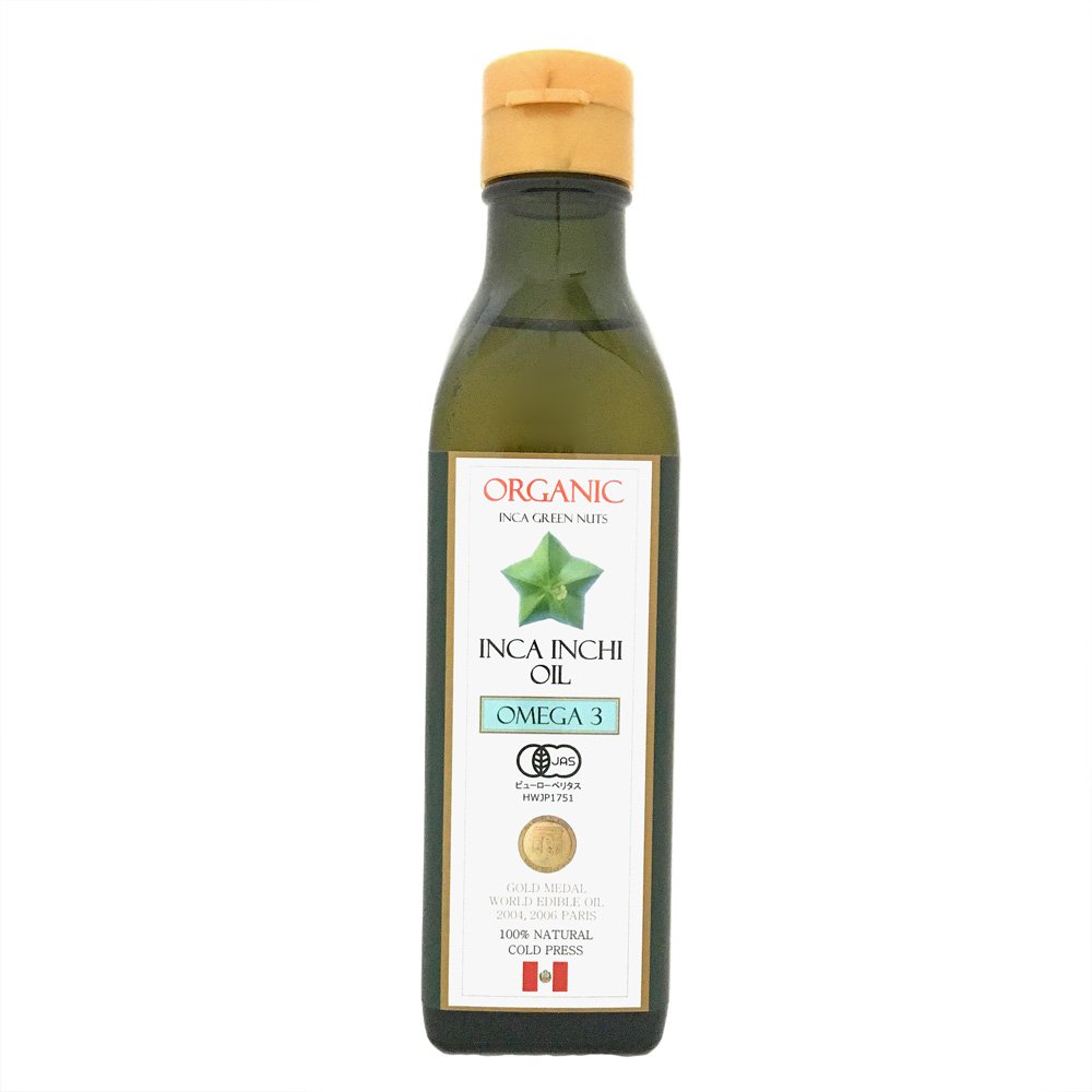 ペルーアマゾン産のインカグリーンナッツ(サチャインチ)の種子を絞った無添加・未精製のオイル