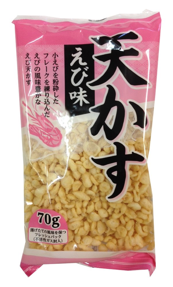原材料:小麦粉、植物油、コーンスターチ、魚介エキス、えび、食塩、えび醤、調味料(アミノ酸等)、膨張剤、紅麹色素、酸化防止剤(ビタミンE)