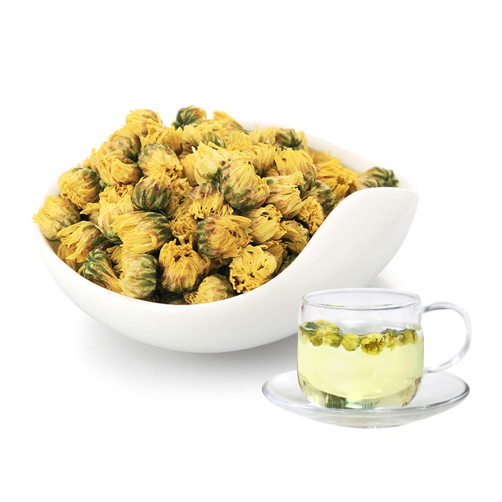 胎菊は香りと栄養成分が凝縮された菊が開く一歩手前の、蕾のみを摘まれたものは「胎菊」といい、杭白菊の最高級のもので、甘い香りを持つのはこのお茶の特徴です。 菊の花の原産地として最も有名なのは杭州(杭白菊)で、今回仕入れたのは杭白菊の中でも高品質な特級品です。 菊が開く一歩手前の、蕾のみを摘まれたものは「胎菊」といい、杭白菊の最高級のもので、甘い香りを持つのはこのお茶の特徴です。 花自体をお茶として頂くものがあります―胎菊はその内の一つです。 杭白菊は主に、浙江省の桐郷市で生産しています。 菊の花は日本にも早くから伝わっており、平安時代にはすでに観賞用および食用として栽培されていました。 さしみのつまや、おひたしなどが一般的ですが、中国では乾燥させたものをお茶にして飲むことも多いです。