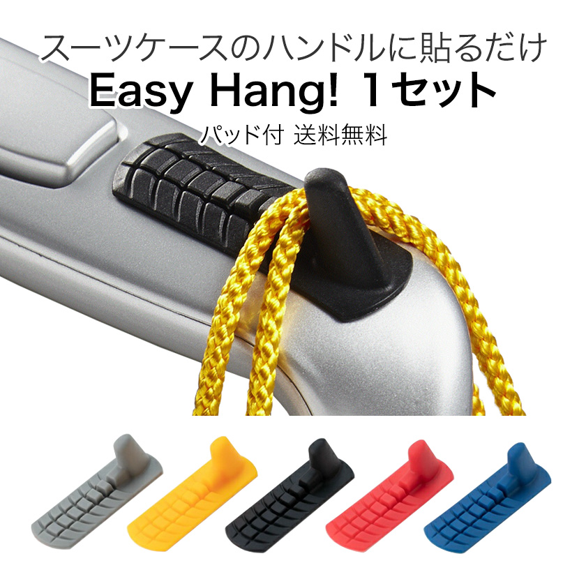 EasyHang!は、スーツケースやキャリーバッグのハンドルに貼るだけで小物が掛けられる便利グッズです。