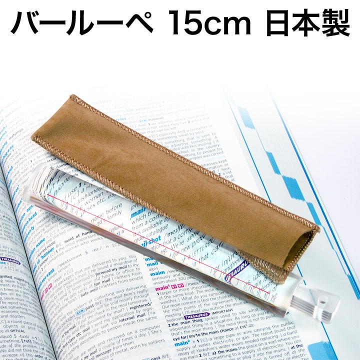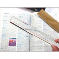 15センチ、倍率2倍のバールーペ。赤ライン入りで、読書、新聞、辞書を真っすぐに読めて便利。縦書き・横書き対応。データの読みとりにも使える。