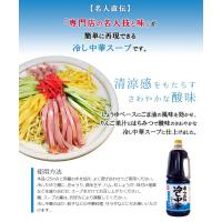 | 商品特徴 | しょうゆベースにごま油の風味を効かせ、りんご果汁とはちみつで酸味のさわやかな冷し中華スープに仕上げました。 |