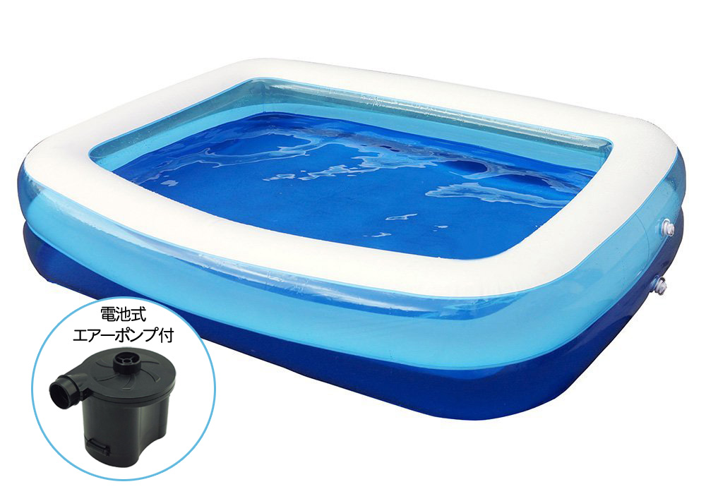 ファミリープール 2m + 電池式ポンプ 2m HAC 二気質 水抜き穴 ジャンボ キッズプール