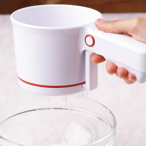 ふるう時は空気を含ませるように高い所からふるうか、ボールなどに落として2回ふるいにかけるとより細かくなります。