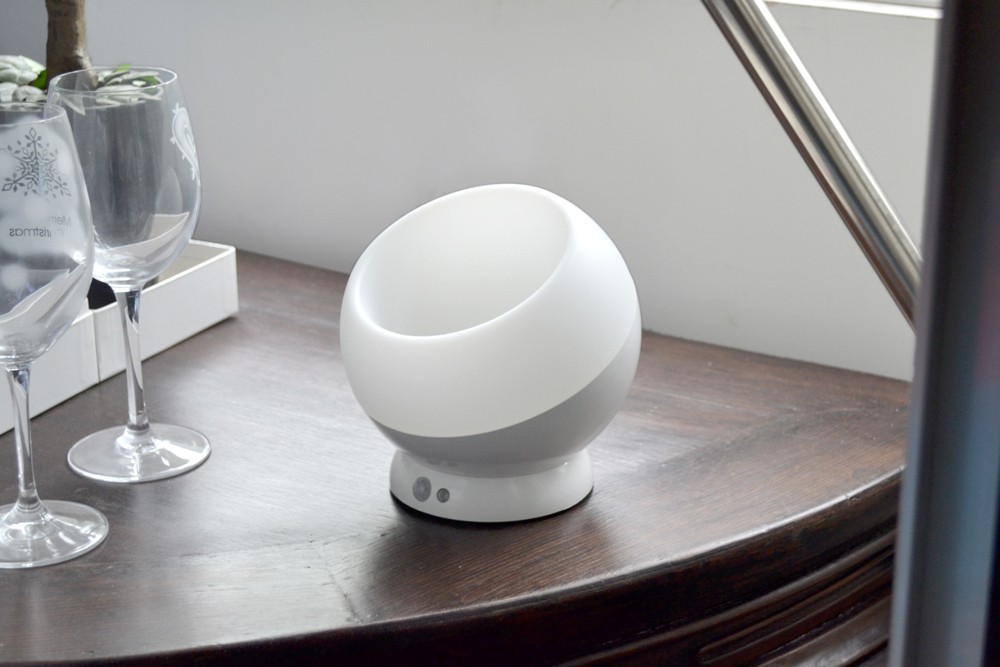 ライト部分が凹んでいるちょっと変わったセンサーライト。アクセサリ、鍵などを入れて置いたり、季節に合わせていろいろな装飾をして楽しめます。スイッチはオン・オフ・オートの3パターン。