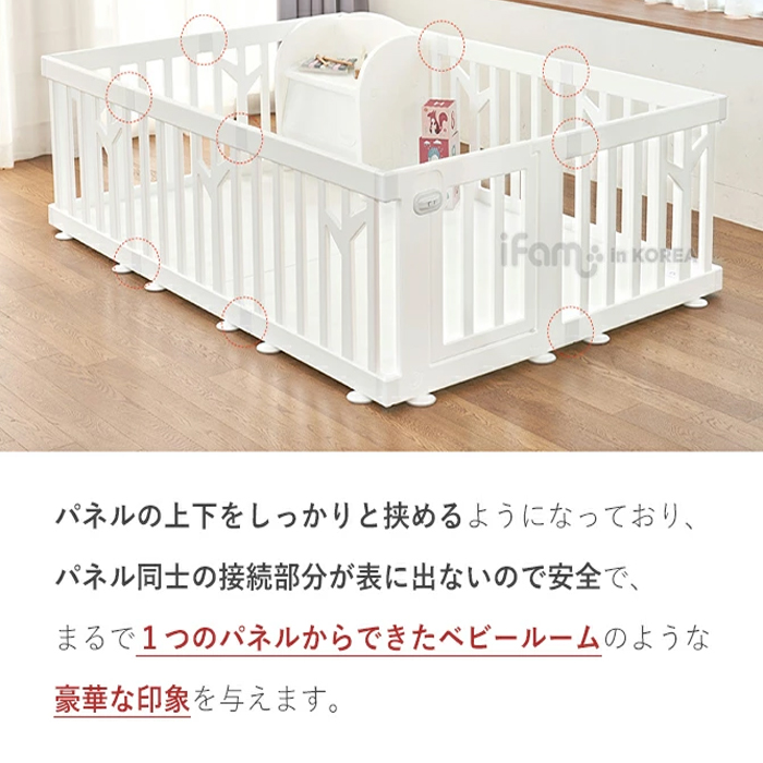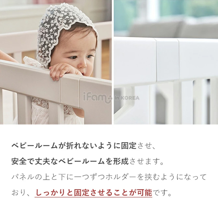 お子様が寄りかかってもベビーサークルの形が崩れず、安全にお使いいただけるようになります。