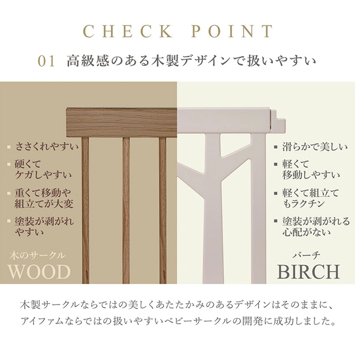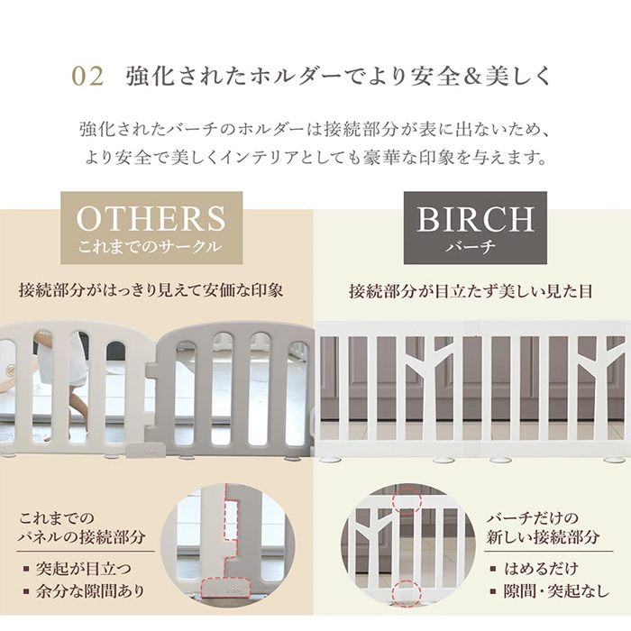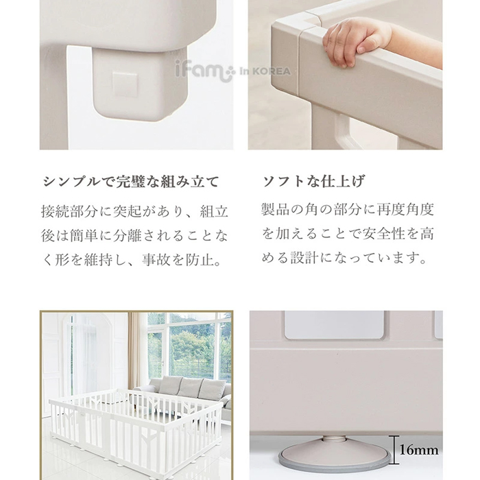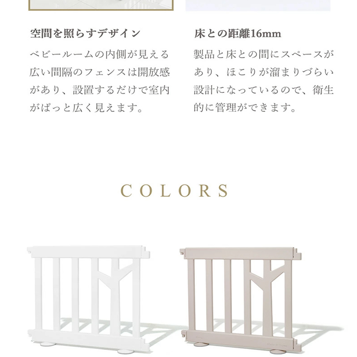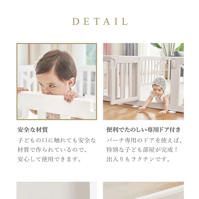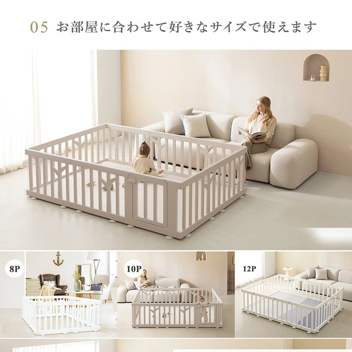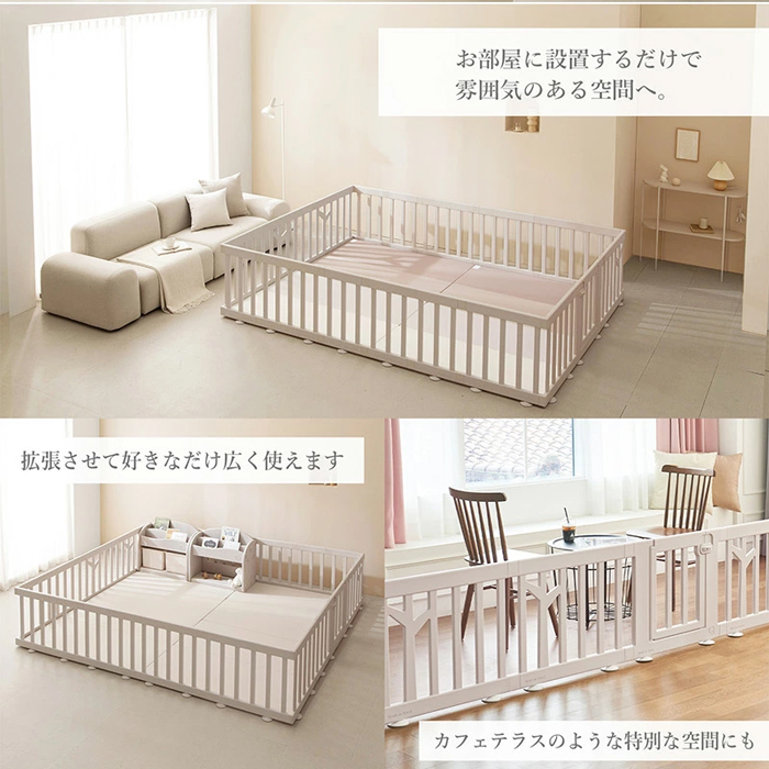 ベビーサークル、ベビーゲート、キッズルームとしてマルチに使えるおしゃれなベビーサークル。工具なしで簡単に分解できるので折りたたみ式ベビーサークルのように小さく収納できます。(パネルを連結した状態では折りたみできません。)