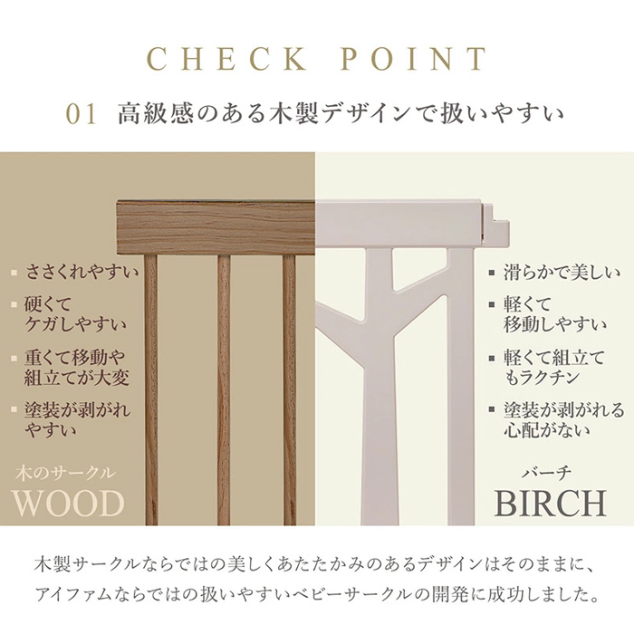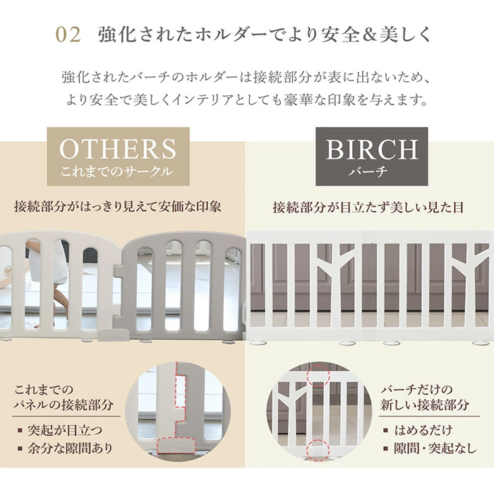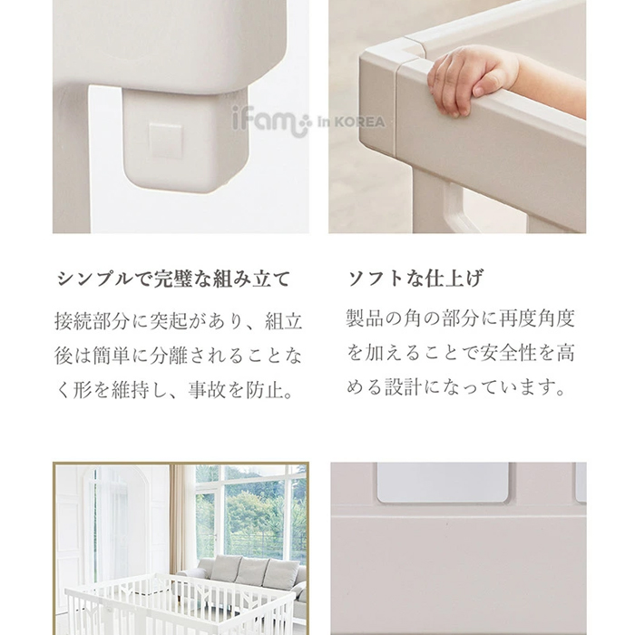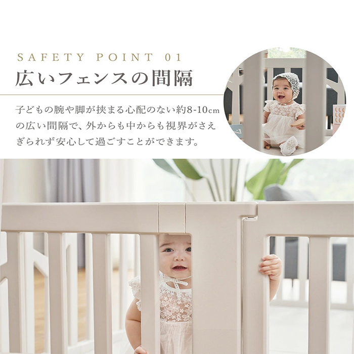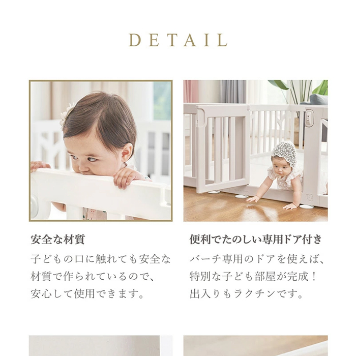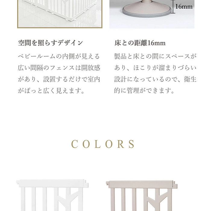 ベビーサークル、ベビーゲート、キッズルームとしてマルチに使えるおしゃれなベビーサークル。工具なしで簡単に分解できるので折りたたみ式ベビーサークルのように小さく収納できます。(パネルを連結した状態では折りたみできません。)