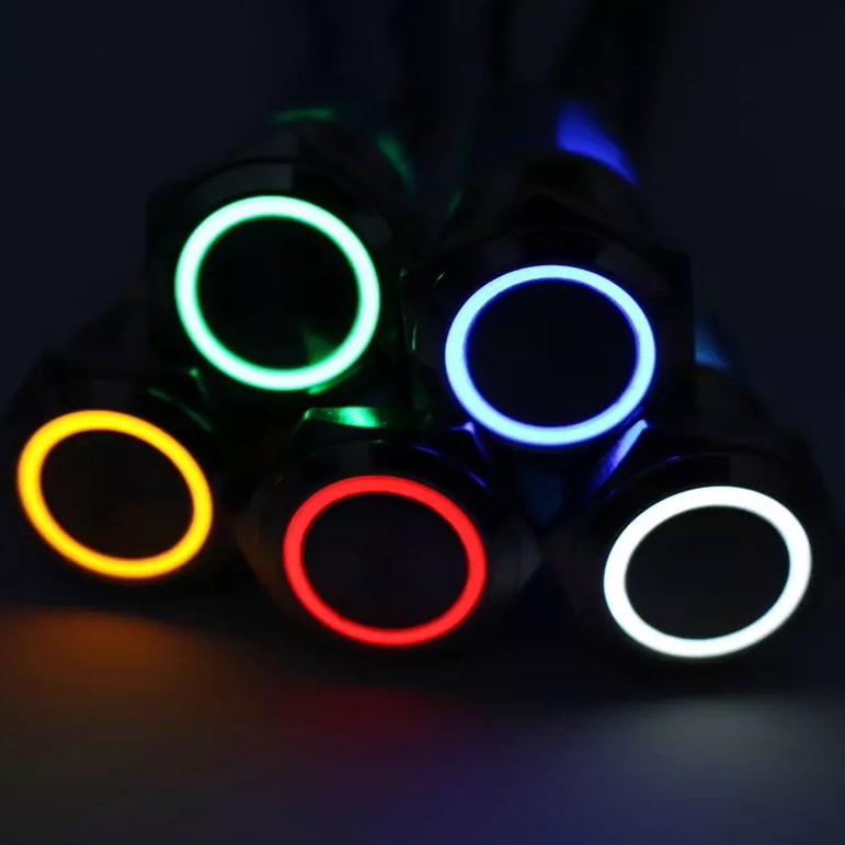 ステンレス IP65防水 16mm LEDリングライト内蔵 プッシュスイッチ 配線ソケットセット