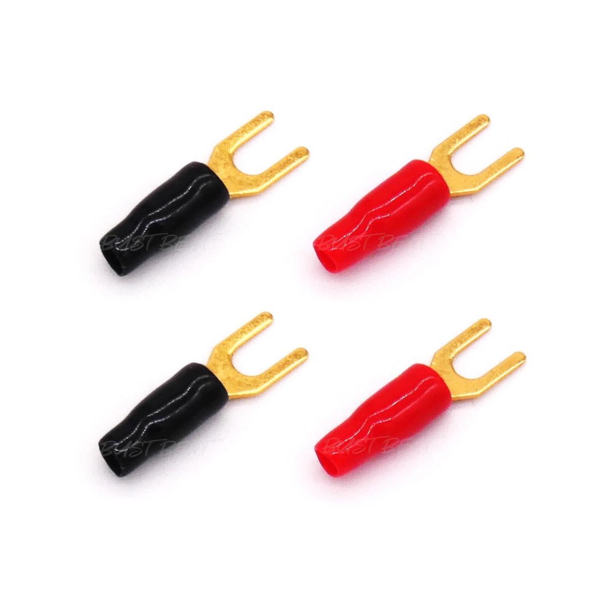12G 12ゲージ 3.4sq用 金メッキ クワ型ターミナル Y端子 圧着端子 赤/黒 4個セット アンプ ネットワーク