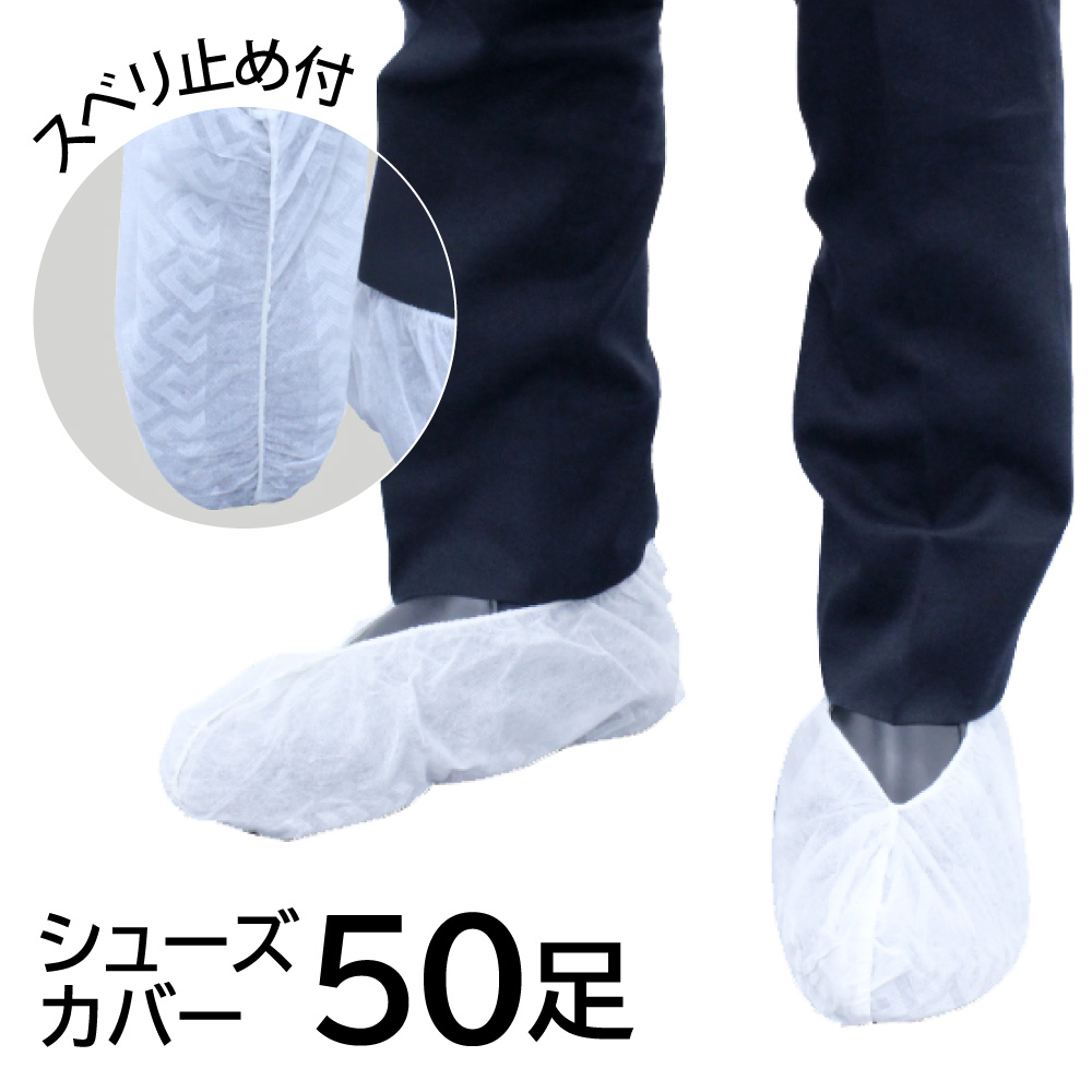 アゼアス シューズカバー (短) すべり止め付 AZCLEAN1802 50足入 使い捨て 不織布製
