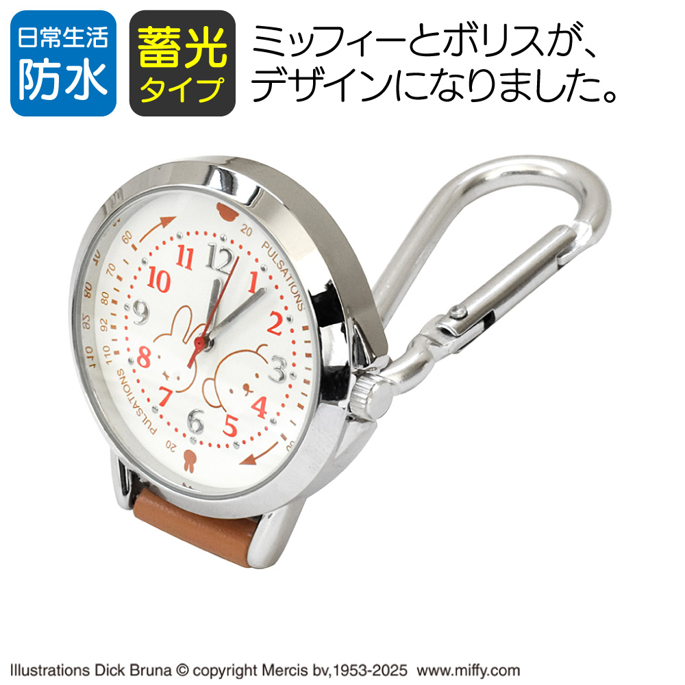ディック・ブルーナ ナースウォッチ ミッフィー&ボリス かわいい キャラクター 脈拍 カラビナ付 時計 蓄光盤 ブラウン 看護学生 ST-PLMF0009 メール便